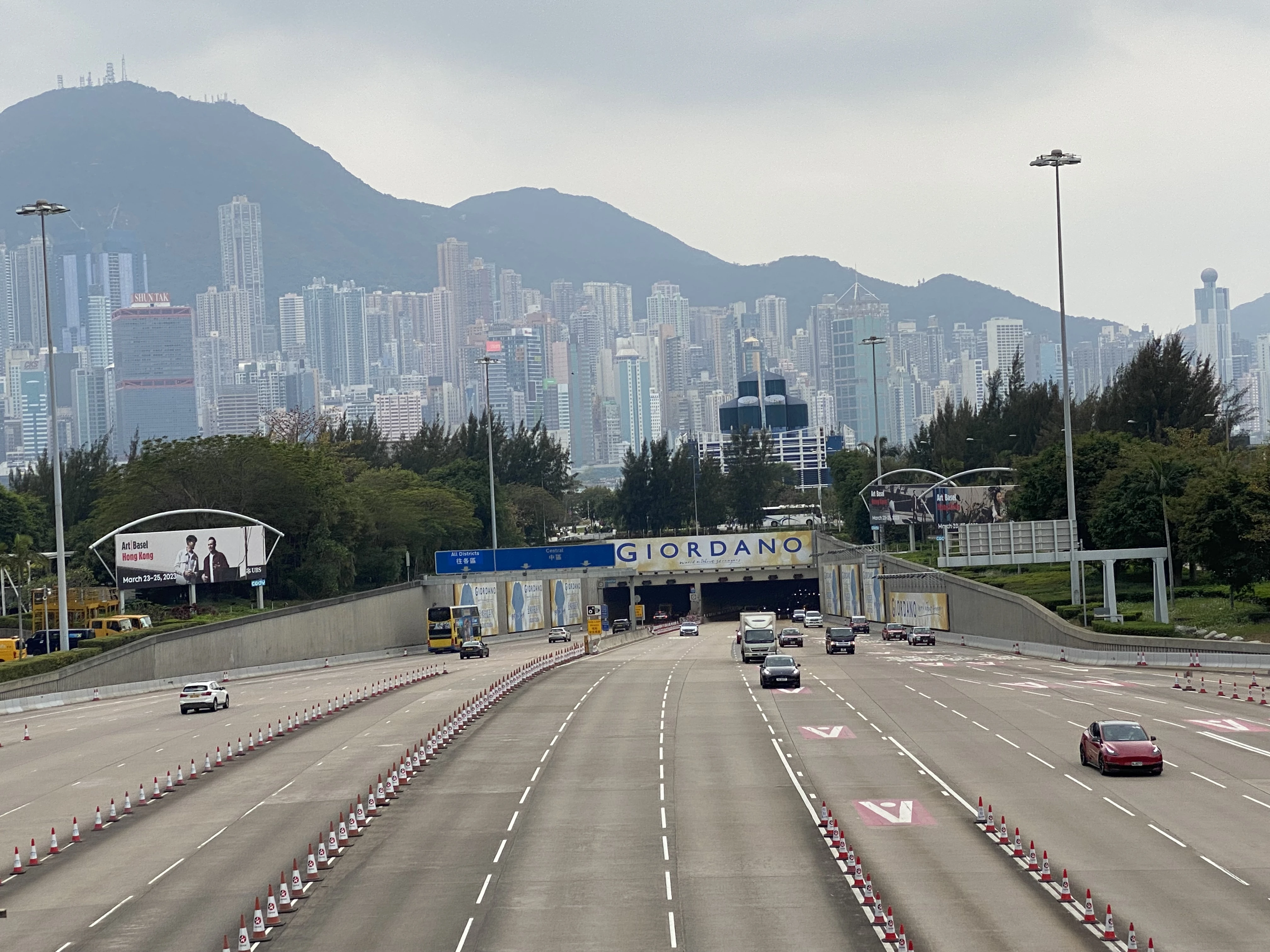 2025年11月30日:西區海底隧道往港島方向出口通往中區、西營盤及上環的支路拓闊至三條行車線。[30]
